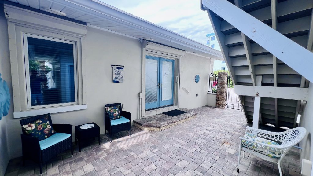 Enter through your private gated courtyard into a home that redefines beachfront luxury. The ground-level main house requires just two steps up, making it accessible for everyone in your group.