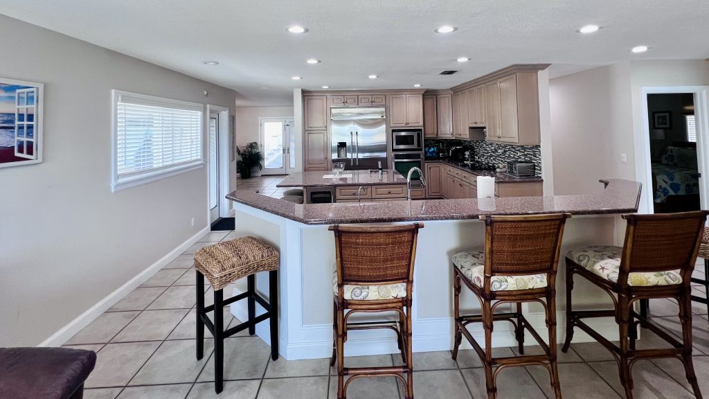 This luxury home sits right on the shores of Indian Rocks Beach, where you can watch the world’s most spectacular sunsets from your living room window or while lounging on your expansive private patio. No crowded boardwalks, no long walks to the beach – just pure, uninterrupted coastal bliss.